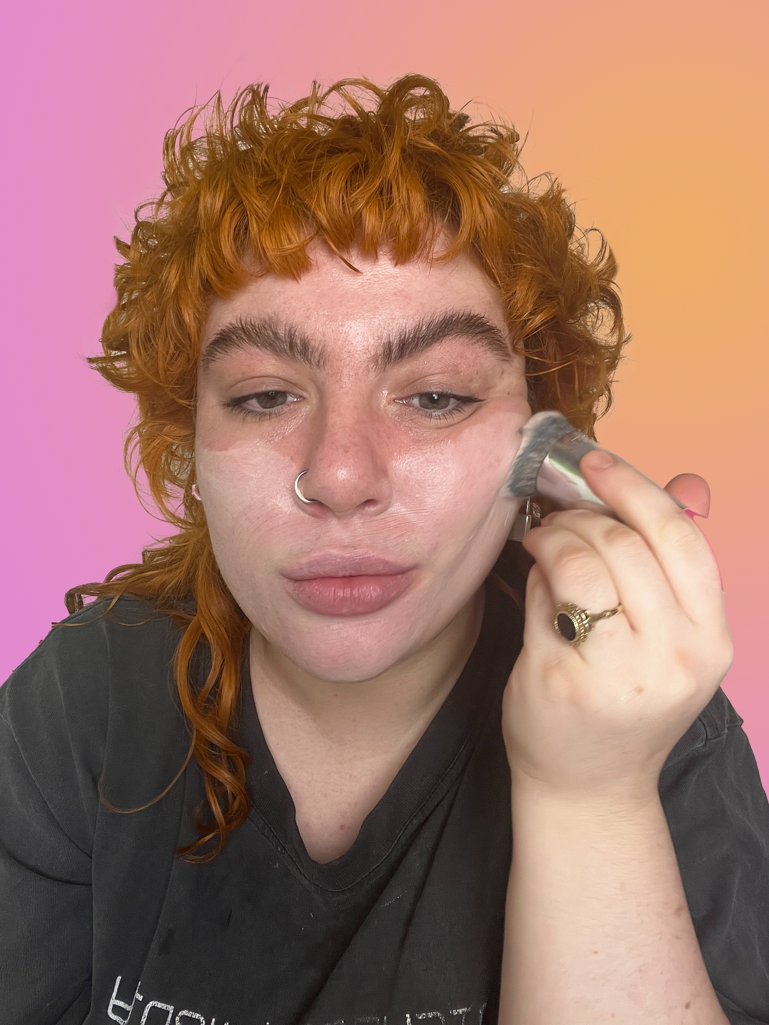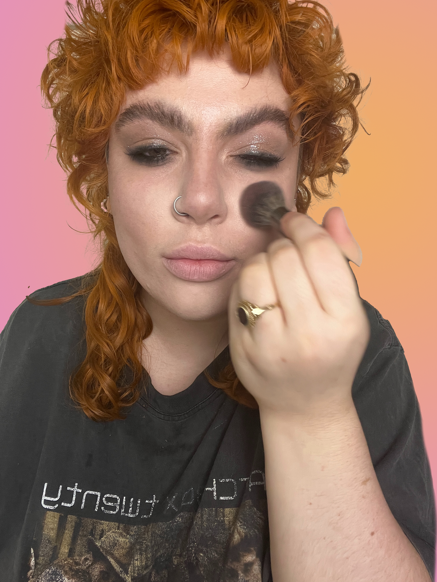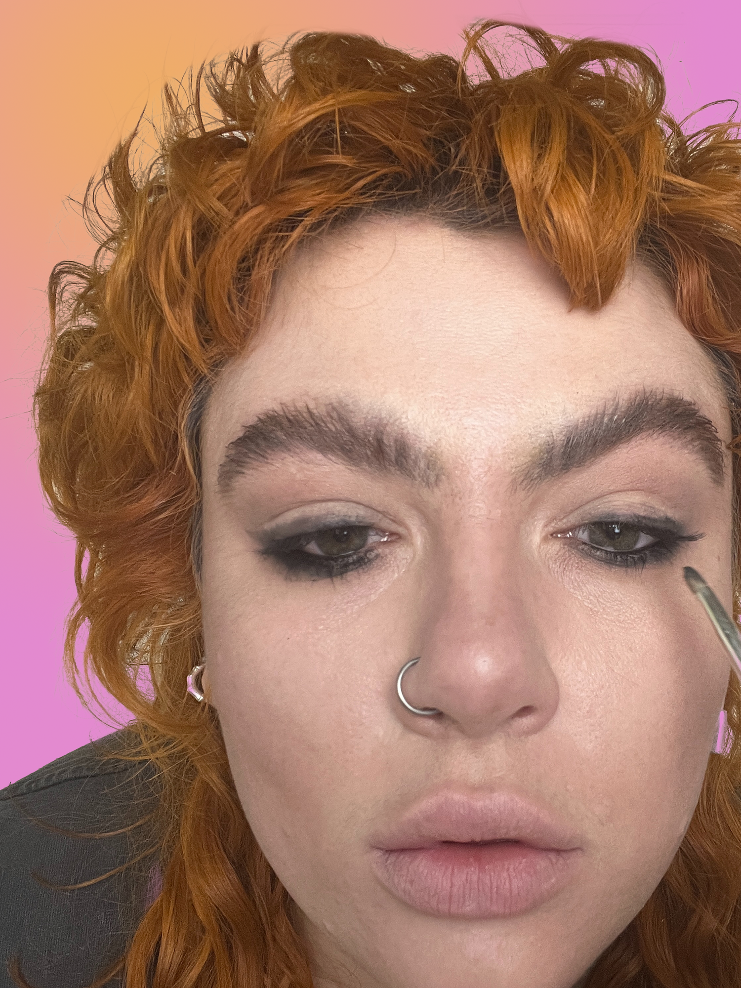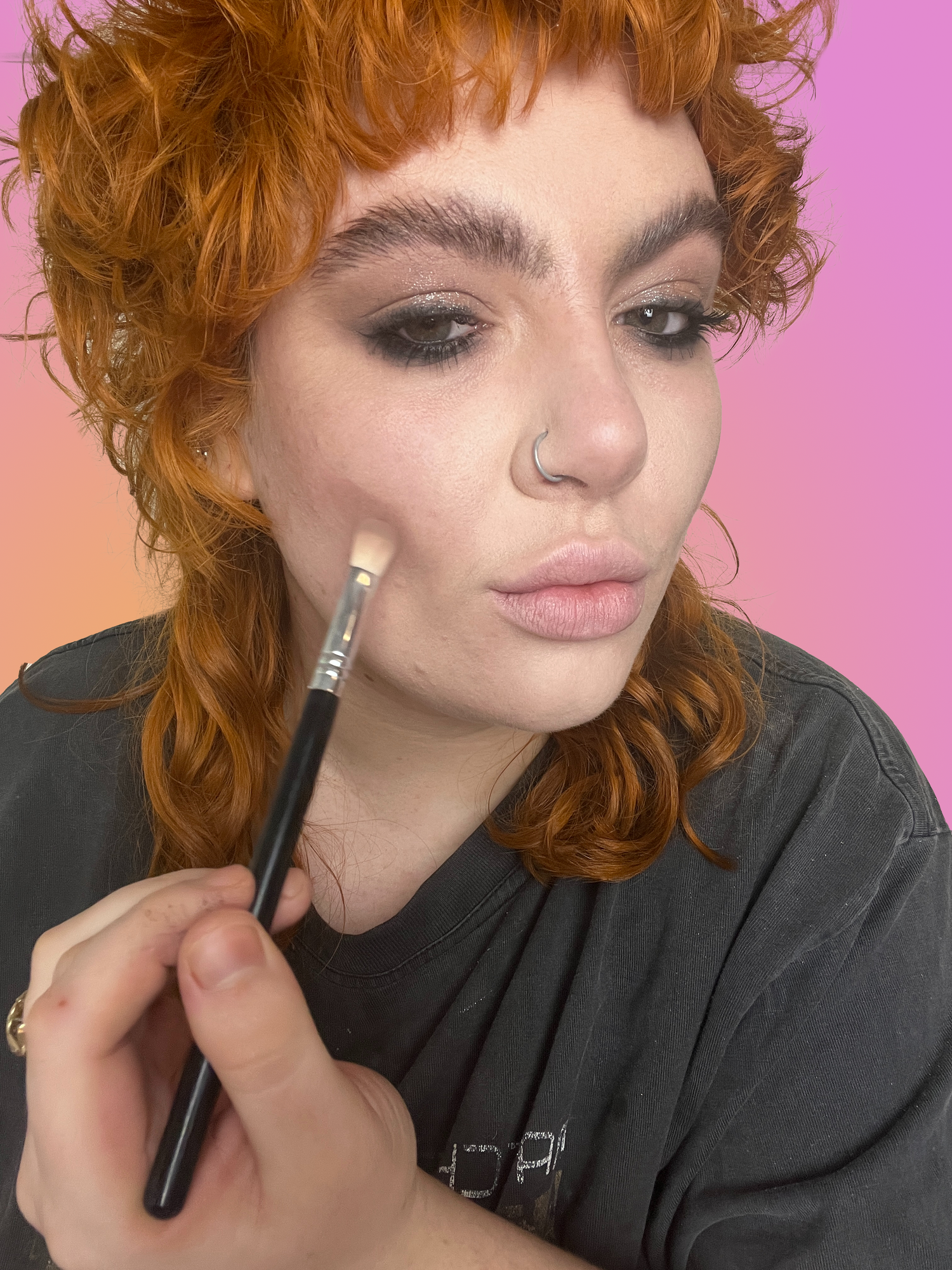 The next step is completely optional, but to add some dimension to my face I contour my nose using the same colours I used on my cheeks. At makeup school, I was told that doing this creates a relationship between all of the shadows on my face, but like most makeup trends it might just be reinforcing yassified european beauty standards - so this one is optional.