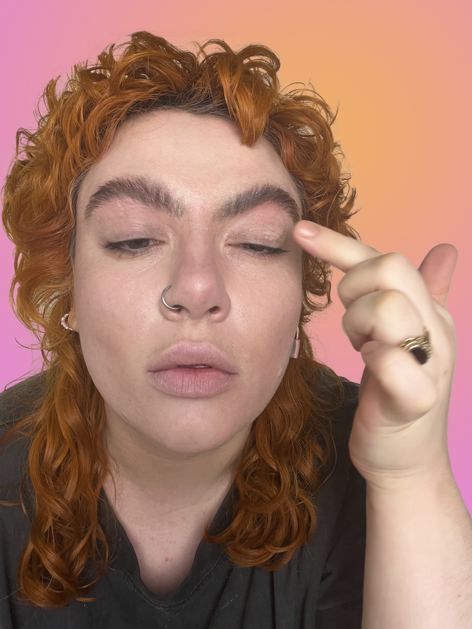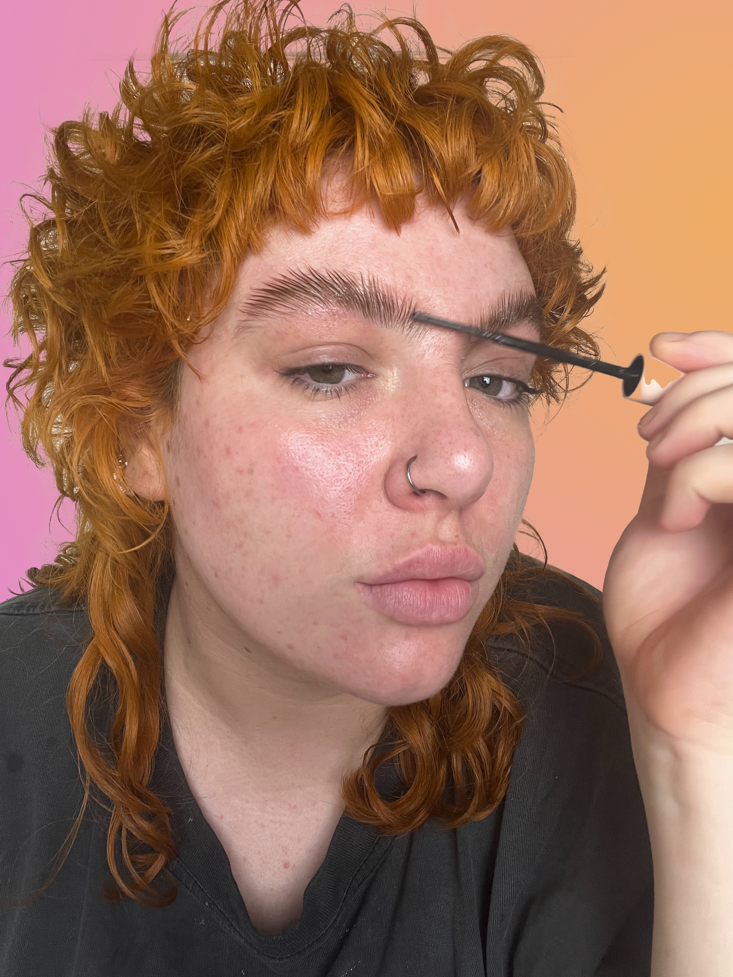 I’m a lover of big brows, but I want to make mine look naturally full rather than laminated today, so I’m brushing them up using a brow gel rather than my usual rock solid hair gel. Think of Tumblr girlies Bambi Northwood Blyth and Barbie Ferreira’s natural, unkempt fluffy arches, rather than Tik Tok’s Jess Hunt or Matilda Djerf perfectly slicked up ones.