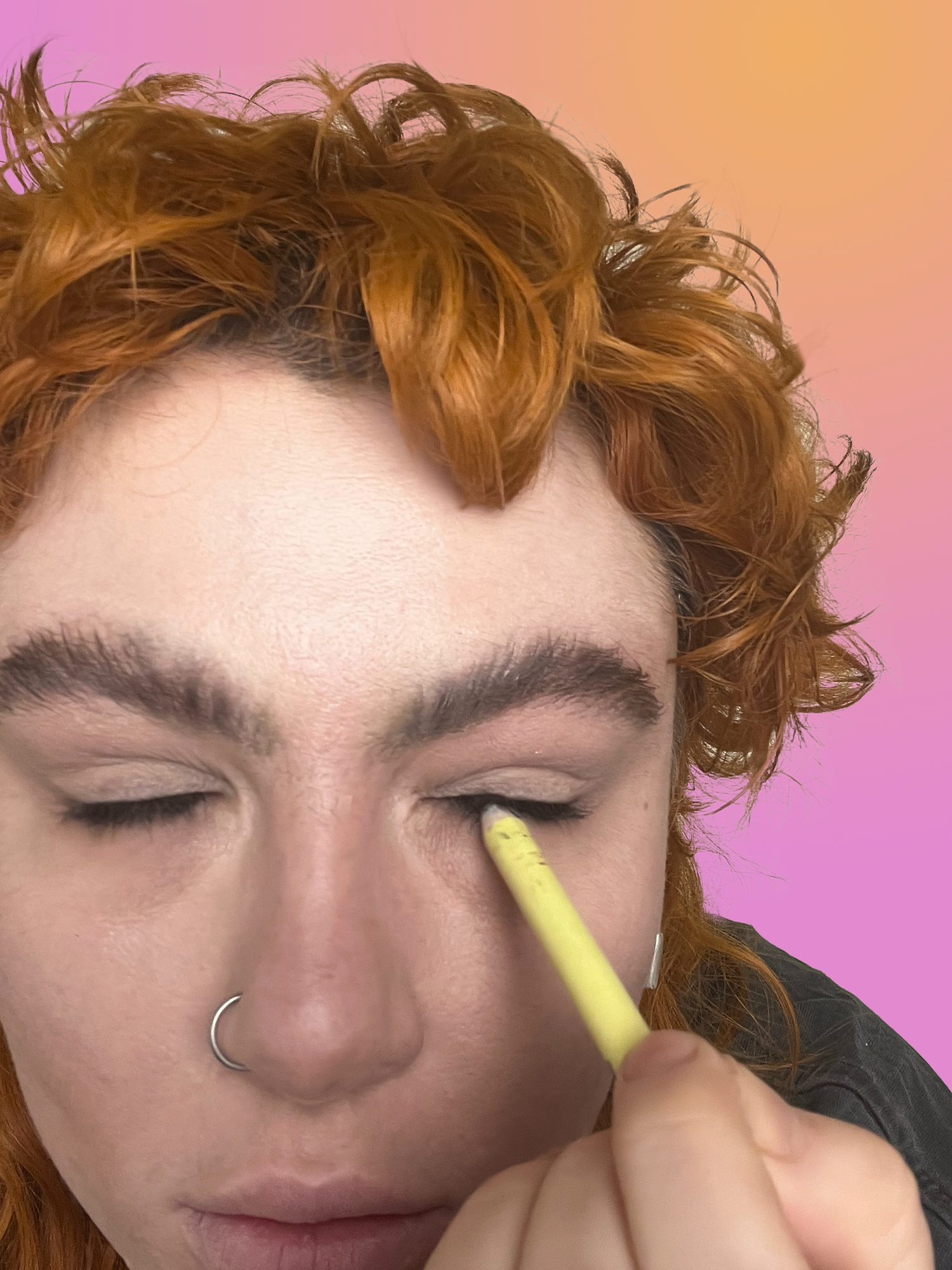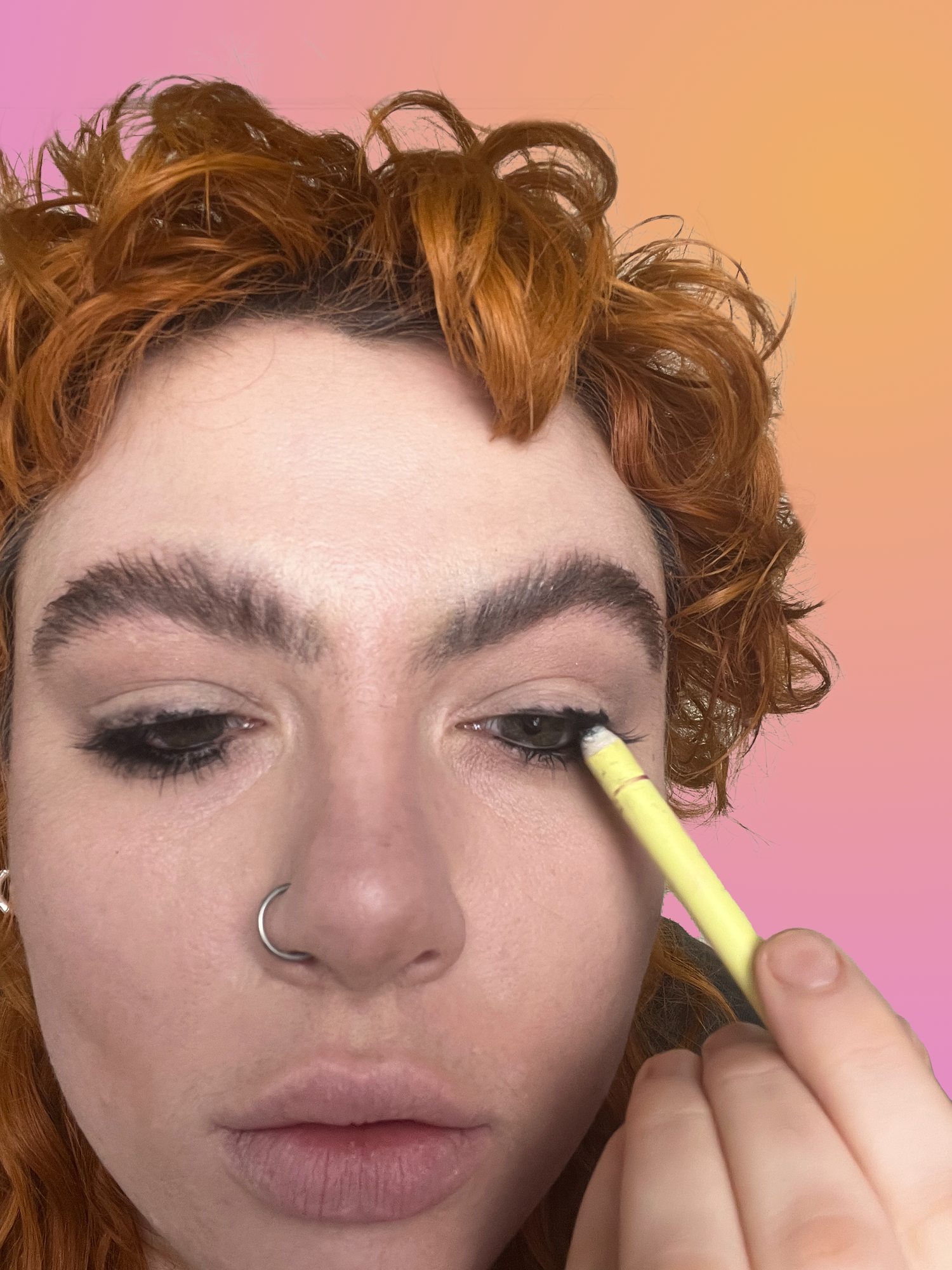 You could skip applying a primer completely if you wanted a realistic 00s look, but I have really oily eyelids so this would last approximately 10 minutes without. I’m using one that’s completely sheer, because the hyperpigmentation on my lids plays really well with the grungy, smoked out shadow.