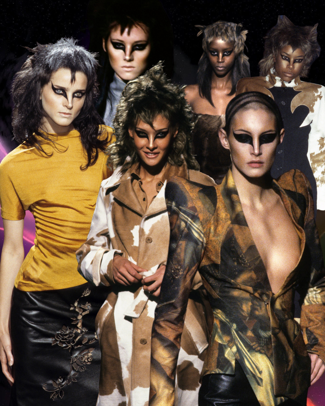 It’s interesting to me that the look, created by makeup artist Topolino, references the markings of the Thompson’s Gazelle because the result has none of the gazelle’s fragility. It’s pure aggression, the models are wearing the shredded markings of the gazelle but look like the predator, remade and toughened for a world of nasty bitchy fashion press. A truly iconic look in a tense show, where disasters included a car exploding into flames and Naomi Campbell being fired, but which reinstated McQueen as one of the, if not, the, most exciting creatives in the industry.