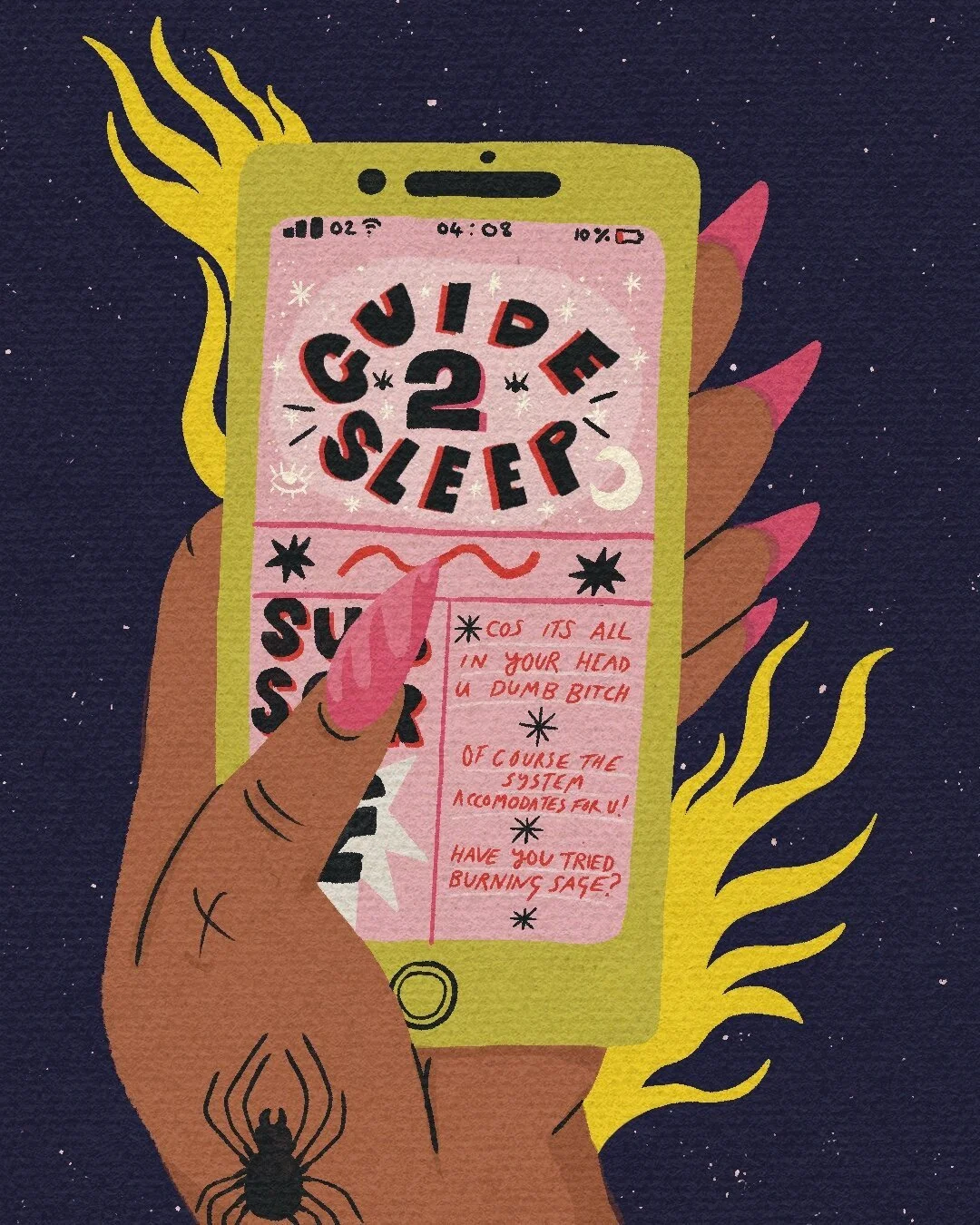 I first experienced insomnia during Year 6 SATs; anxious about the next day’s exam, I tossed and turned as the arms on my dolphin clock raced to morning. I recall my mom running me a bath to relax as the sky cracked into apricot, and I sobbed. I would come to accept insomnia as a given in periods of high pressure and do my best to prepare – going to bed earlier, avoiding certain foods, no screen time after 9. But, as the effectiveness of each attempt failed, I realised that despite fastidiously controlling my environment, my insomnia was fuelled by outside forces.
