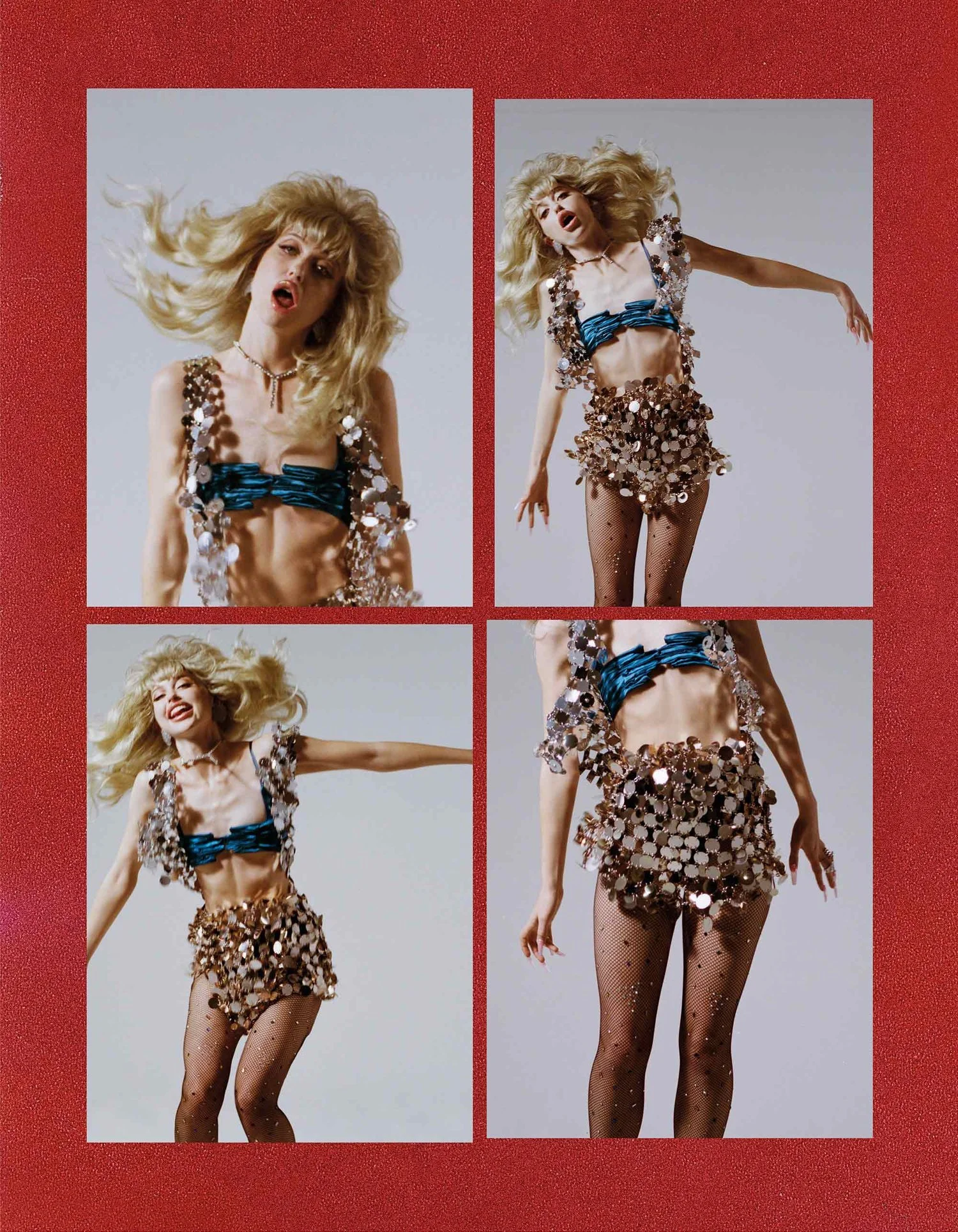 Look 9: Necklace: Y/Project | Rings: Mi Manera | Earrings: Saad Collection | Bra: T Label | Top & Skirt: Paco Rabanne | Tights: Stylist own | Heels: Sophia Webster