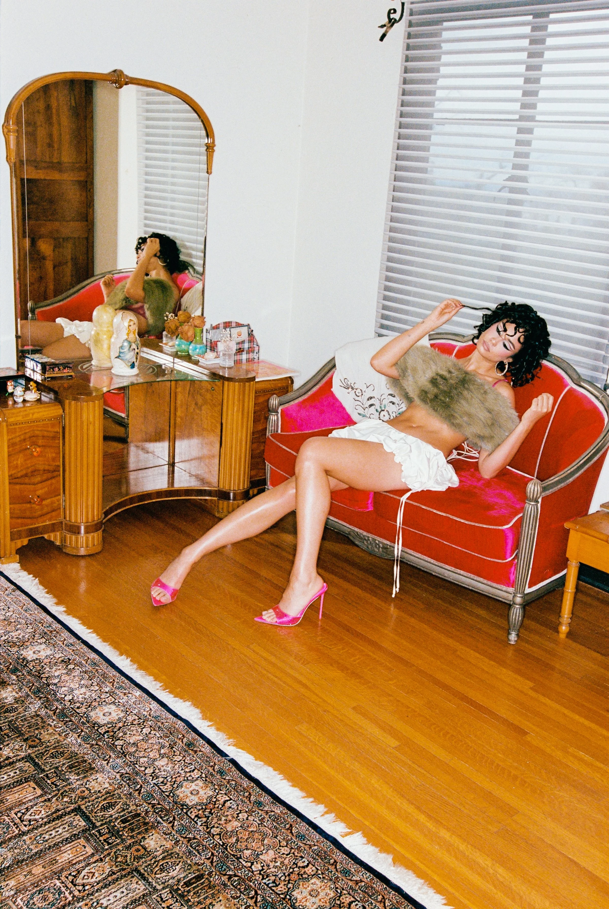 Bra: Agent Provocateur | Skirt: Sculptor | Faux Fur: Sculptor | Shoes: Jessica Rich.