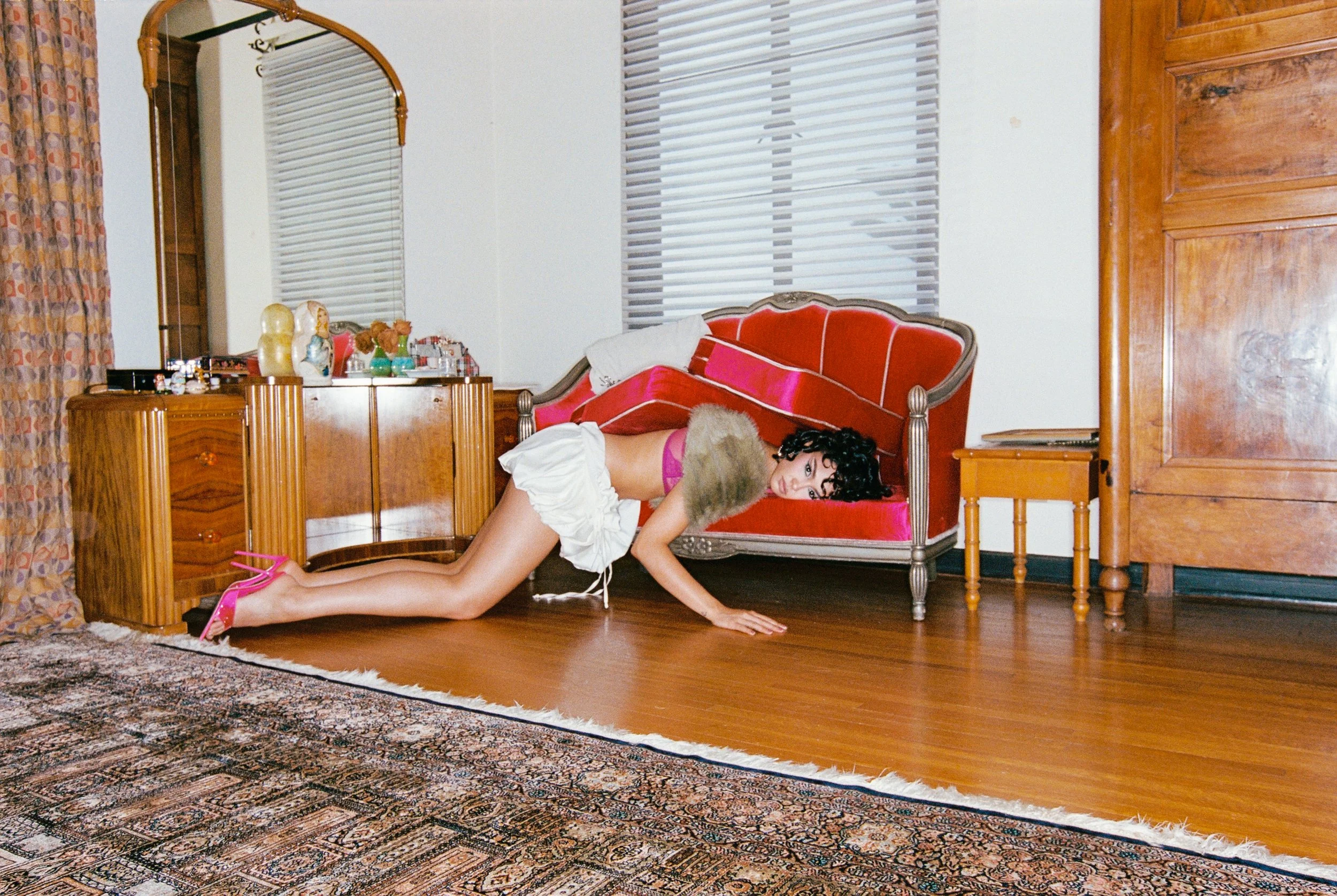 “I was a very go-with-the-flow kind of kid.” Eaton continues, reminiscing on getting scouted by Vivien's Model Management aged 15. Before she was shipped off down the traditional casting routes we all know so well from America’s Next Top Model reruns – New York, Paris, Milan – Eaton’s agent showed her headshots to George Miller, who was casting for his 2015 blockbuster Mad Max: Fury Road. After an elaborate audition process in which Eaton had to perform a monologue from Network (1976), and recount a happy story and then a sad story from memory, she scored the part of Cheedo the Fragile, joining the likes of Zoe Kravitz, Rosie Huntington-Whiteley, Riley Keough and Abbey Lee Kershaw to play one of Mad Max antagonist Immortan Joe’s five wives. “I kind of just winged it, and I think I mostly won them over with my sad story, just bawling my eyes out as a 15 or 16-year-old.” Eaton adds. “It wasn’t until I got on set that I realised what acting actually was.”
