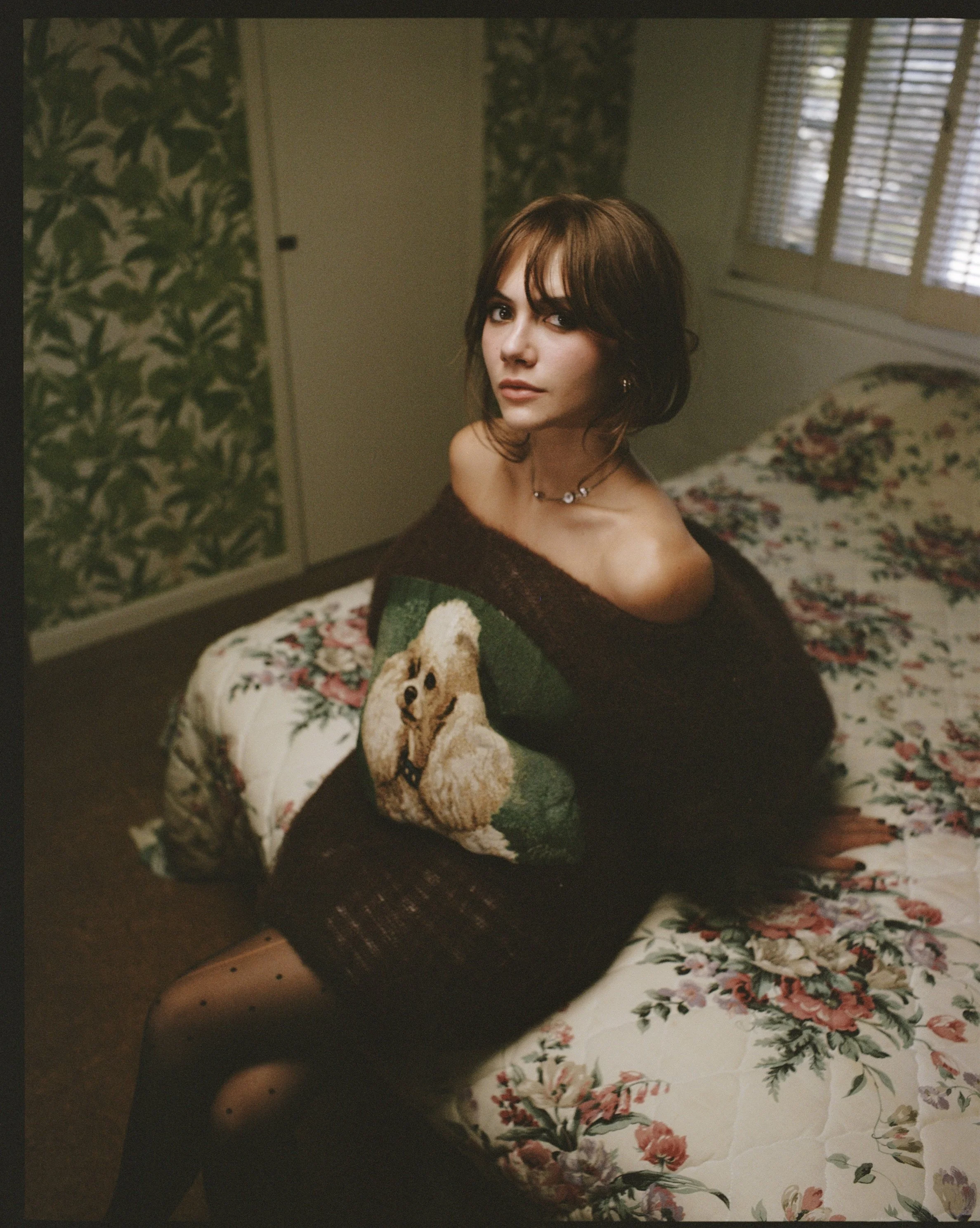 Growing up in Barnes, southwest London, her childhood was “full of fun and love and excitement”. Her mother, former trapeze artist Claire Fossett, comes from a distinguished circus family, while her father is singer Aled Jones (of The Snowman’s “Walking in the Air” fame); her parents’ backgrounds meant her upbringing was “maybe not that conventional, but it made me feel like a job in the arts wasn’t off limits to me”. Although she never went to drama school or received any formal acting training, she learned on the job, carefully observing everyone around her. “I’m a people watcher,” she says. “I love that everyone has such a different technique. So I’ve been learning on every project I’ve done.”