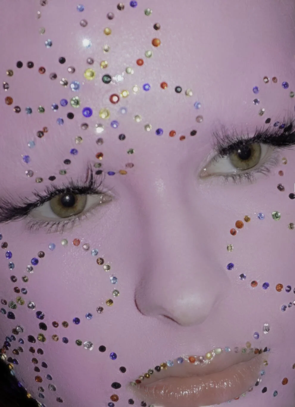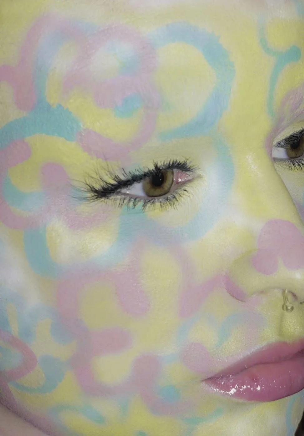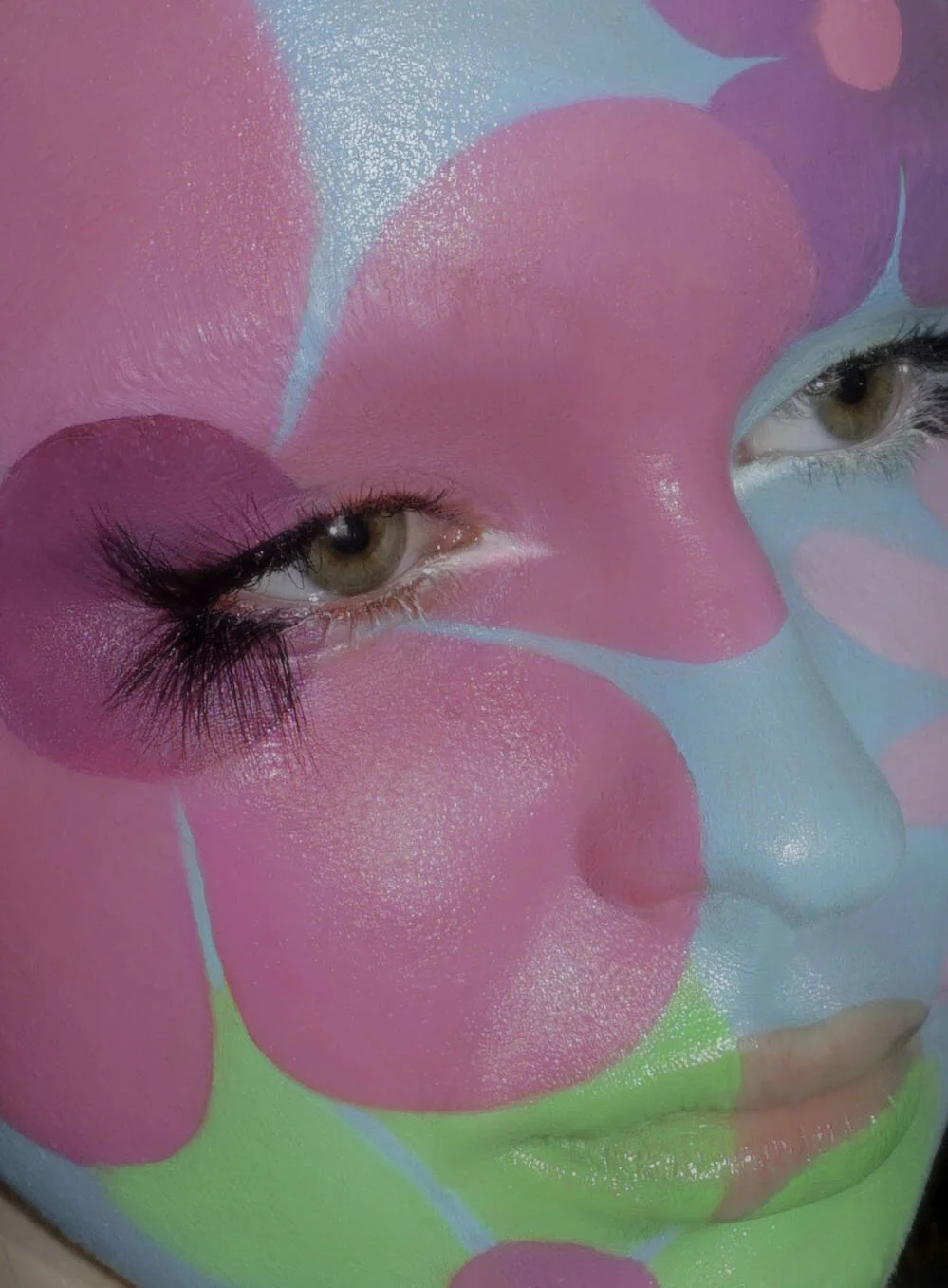 Makeup artist Alice Dodds is inspired by the idea of florals for spring (groundbreaking) whilst taking current Instagram trends and colour pallets and showing them in her own abstracted, camp way.