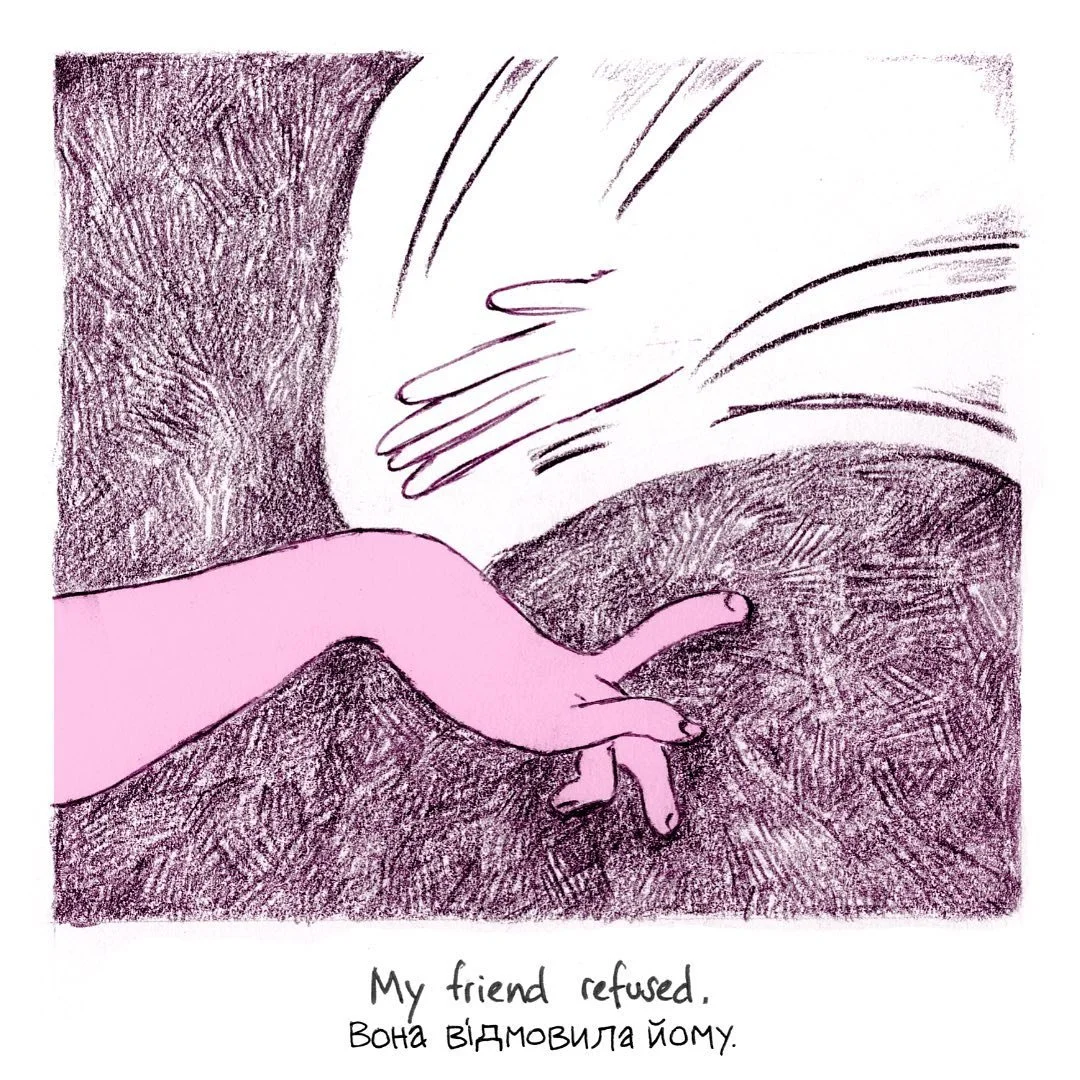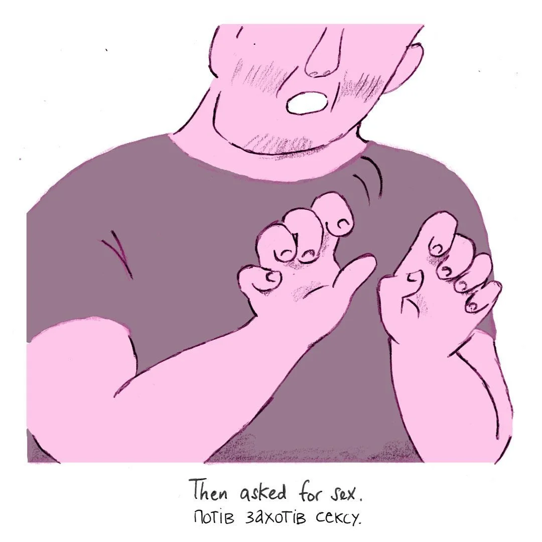 Many Ukrainian refugees experience the support to be dependent on an expectation of “intimate gratitude” – sex and attention in return for a roof, some gifts, or a helping hand. Horrified by how commonplace these experiences are and the fear that people have of speaking up about them, young Ukrainian artist Nataliia Oliferovych started #idontneedfirstsexualaid: an art project that re-tells these anonymously submitted experiences through the pop culture-political medium of comics. By changing the discourse, the project aims to provide a space of healing, support and exchange for refugees encountering sexual harassment and coercion.