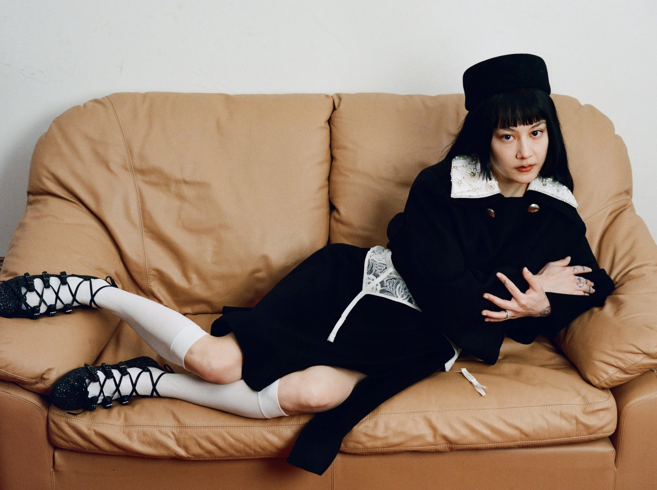 Michelle Zauner is crafting modern mythology. Throughout our conversation for Polyester, she is engaged, inquisitive, and compelling, much like she is on the album—an artist who, like a siren, lures listeners back the moment the music fades. You might know and love her as the visionary frontwoman of the indie shoegaze band Japanese Breakfast, whose lush, evocative albums have become the soundtrack for a generation of dreamers and yearners- or from her bestselling memoir, Crying in H Mart, a poignant exploration of grief, identity, and Korean food,Her last album, Jubilee, was a blend of alternative pop and rock, earning two Grammy nominations and featuring a striking cover adorned with golden persimmons. A distinct iconography runs through her work, and her latest album, For Melancholy Brunettes (and Sad Women), is no exception: its cover art features a lavish banquet table and Zauner herself as a morose woman with her head solemnly in the middle.