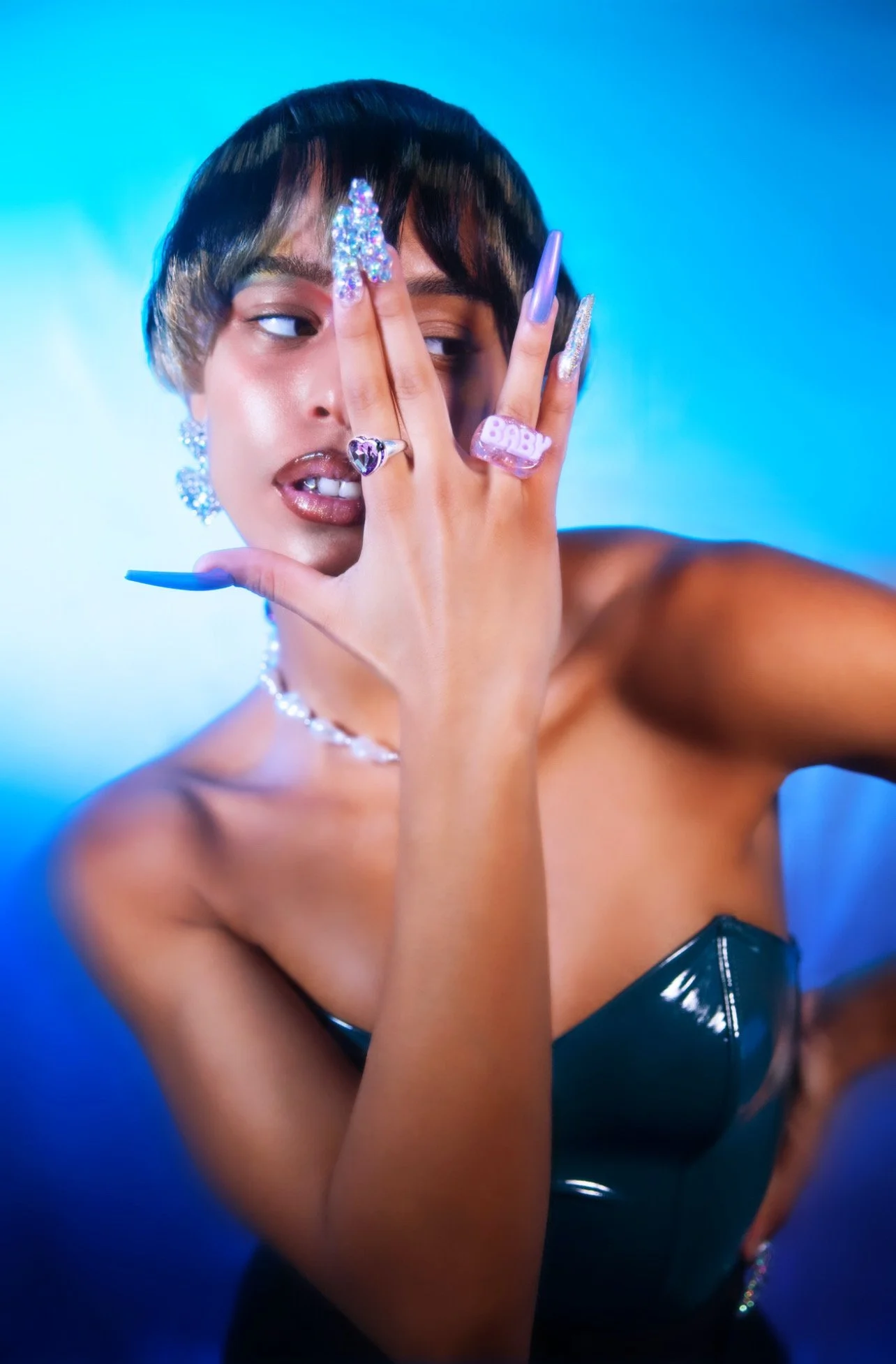 Jupiter Trasher is a futuristic Punk Bratz, she's fearless and unapologetic. Our Punk Bratz explores femininity beyond traditional beauty in order to seek a new empowered generation. I wanted to create transportive imaginary though the spectrum of beauty.