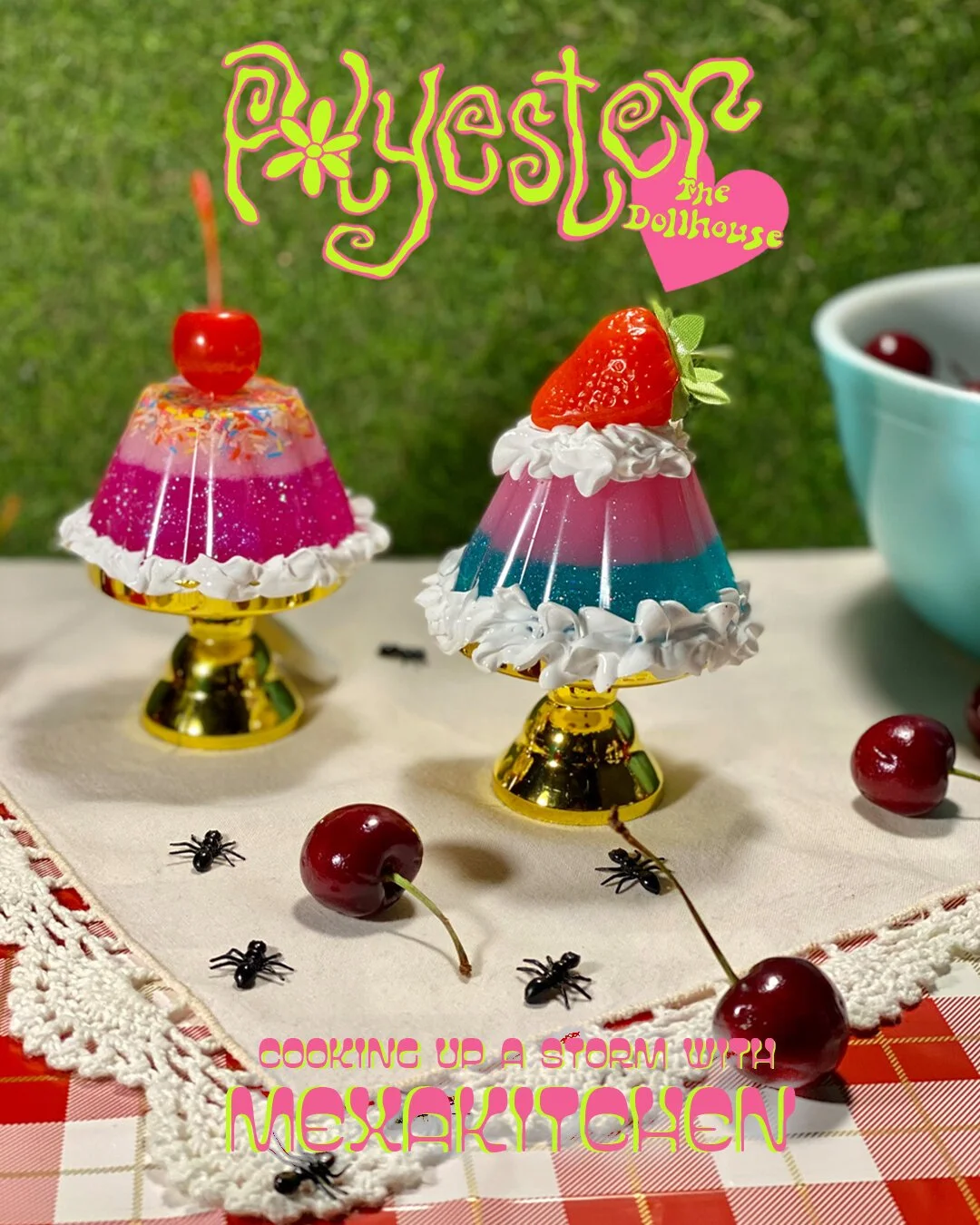 “We’ve seen them all before- the beautiful but often grotesque gelatines and aspics of the 60s and 70s, but this time Elrod is up to her kitschy antics and cooking them up in a bright new way. She back in her art studio and taking the classic recipes from our grandma’s cookbooks and making them into LAMPS. 2020 had proven itself to be the year of reinvention and re-writing of the rule books so Elrod has turned our favourite [and feared!] wobbly dishes and turning them into permanent light fixtures that can be admired for years to come. This collection of illuminated sculptures encompasses everything Elrod is obsessed with- food, kitsch, retro design/décor, and of course- SPARKLES [In case you didn’t know, it wouldn’t be an Elrod piece if it didn’t have glitter in it]. “Mexakitchen- Recipes for A Dazzling Dinner Party” is the name of her imaginary cookbook from which these recipes are being taken from.” Elrod (Mexakitsch)