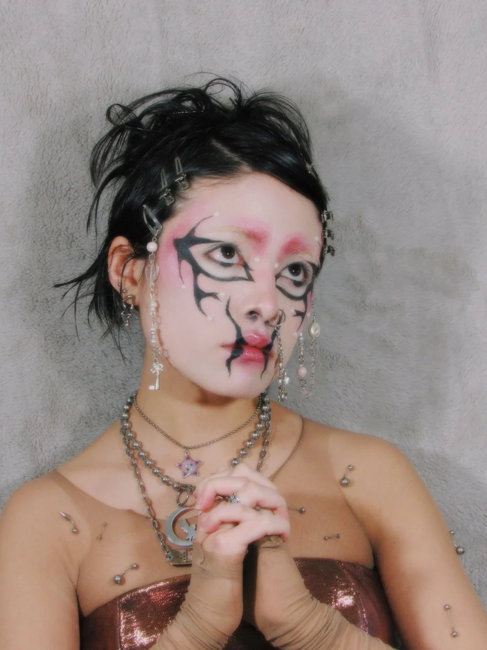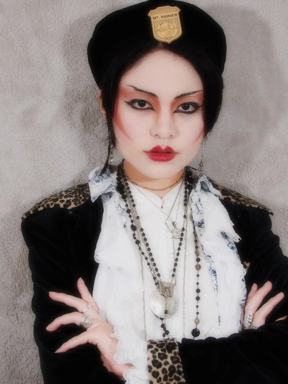 I treated each character as a sort of challenge to see how far I could manipulate and transform my likeness, utilizing knick-knacks, accessories, and garments I've amassed over the years to do so. By toying with the malleability of my appearance + the notion of art as commodity, Trading Cards playfully questions tropes and stereotypes. This is particularly evident in the card for my alien character, who represents the orientalized treatment AAPI bodies receive and are often read through in media and IRL. I want viewers to be forced to confront this abstracted image of the "other" that is, at once, alienated and exoticized. Similarly, I explore ultra-femininity through Amber, hypermasculinity through Antonio, as well as the erotic and queer undertones that emerge as a result of these extremes. Ultimately, through Trading Cards, I ask viewers the following question: How do you construct identity?”