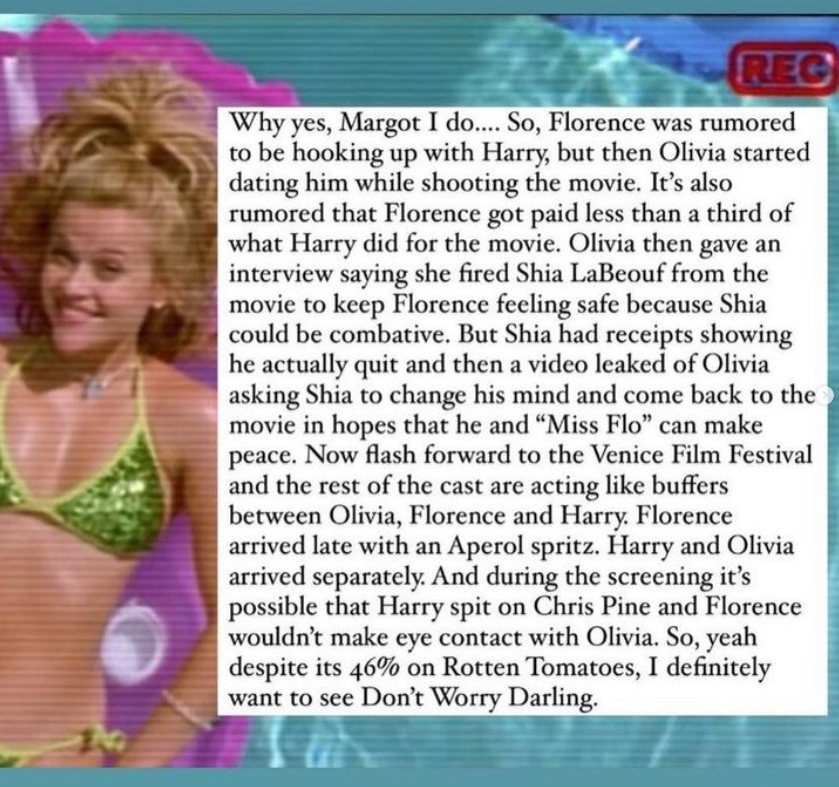 If you're anything like us, the drama surrounding Don't Worry Darling has been consuming your every waking thought. Harry Styles spat on Chris Pine! Olivia Wilde lied! Florence Pugh turned up and drank aperol spritz defiantly!